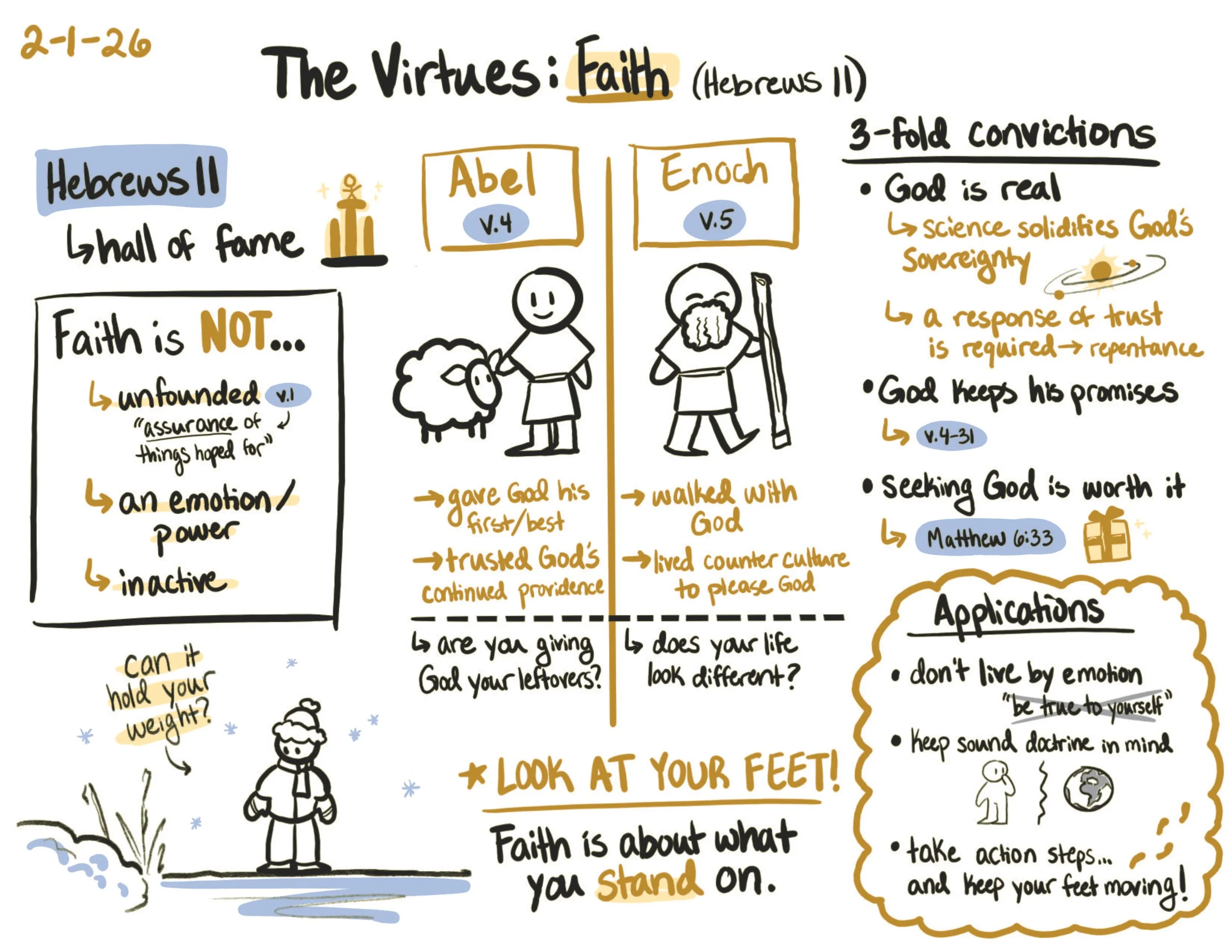 Summaries of previous messages in the incredible form factor of an illustrated sketch. Shout out to Elise L. (one of our student leaders) for drawing these!